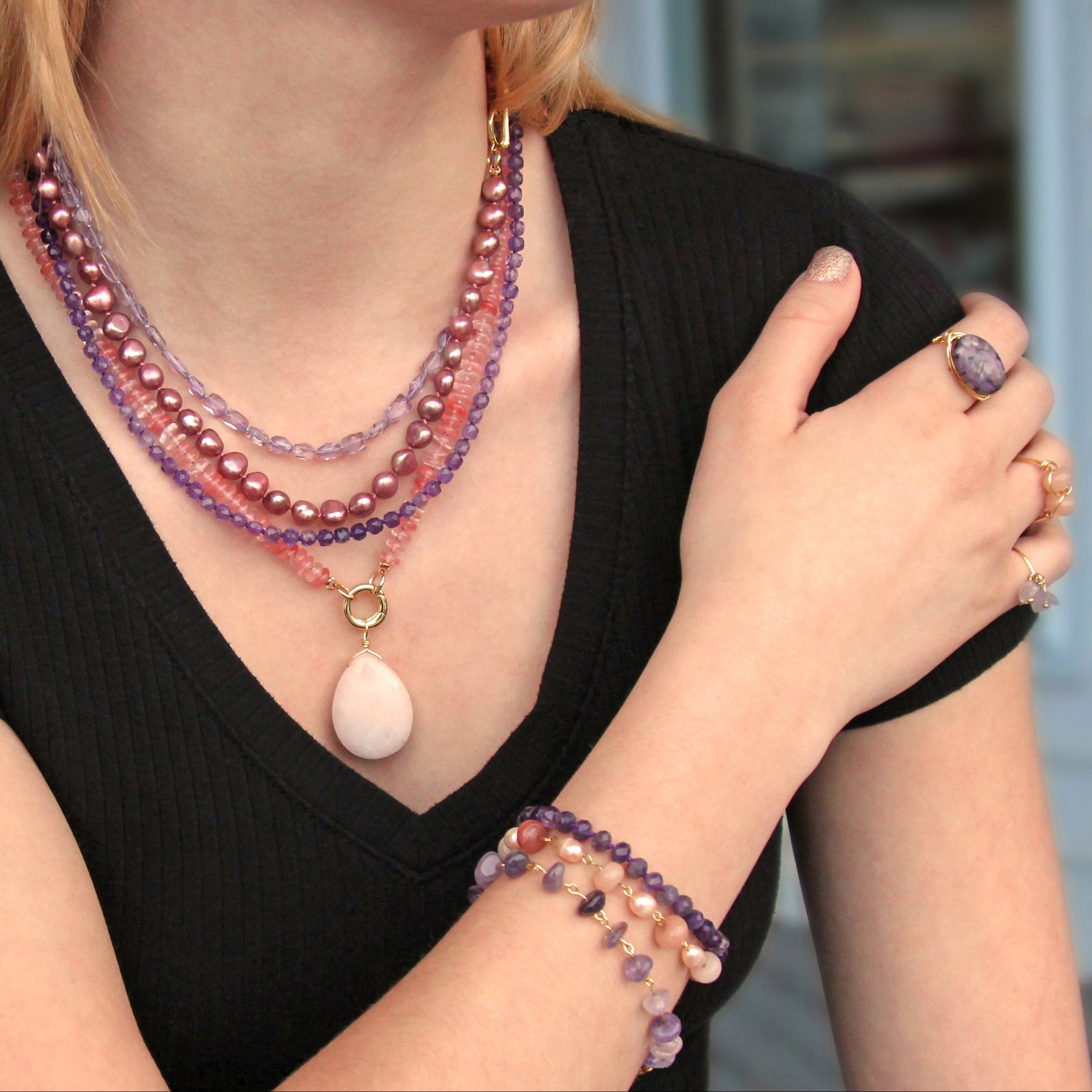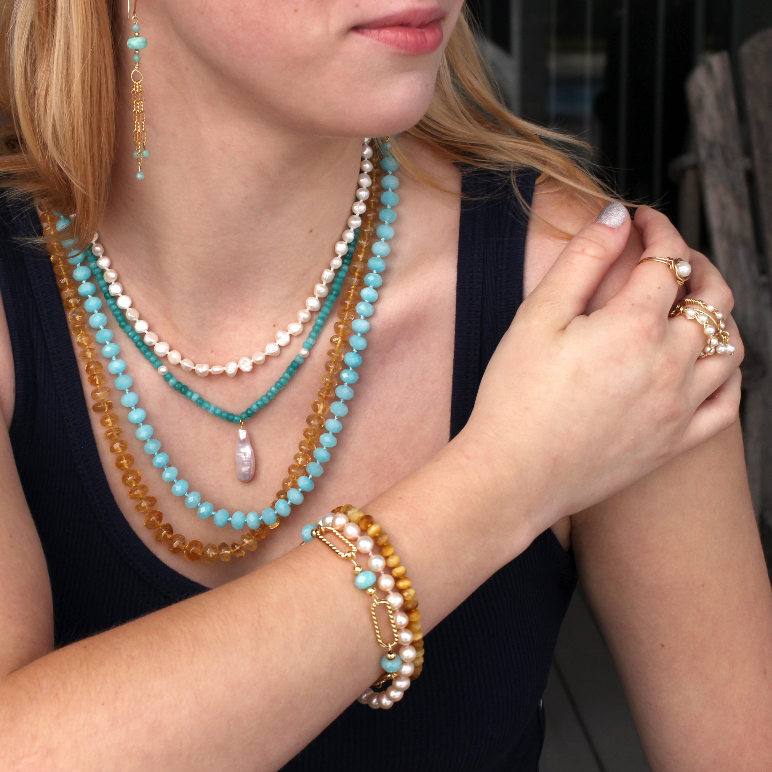 Rainbow Tiger's Eye Necklace with Turquoise Pendant
