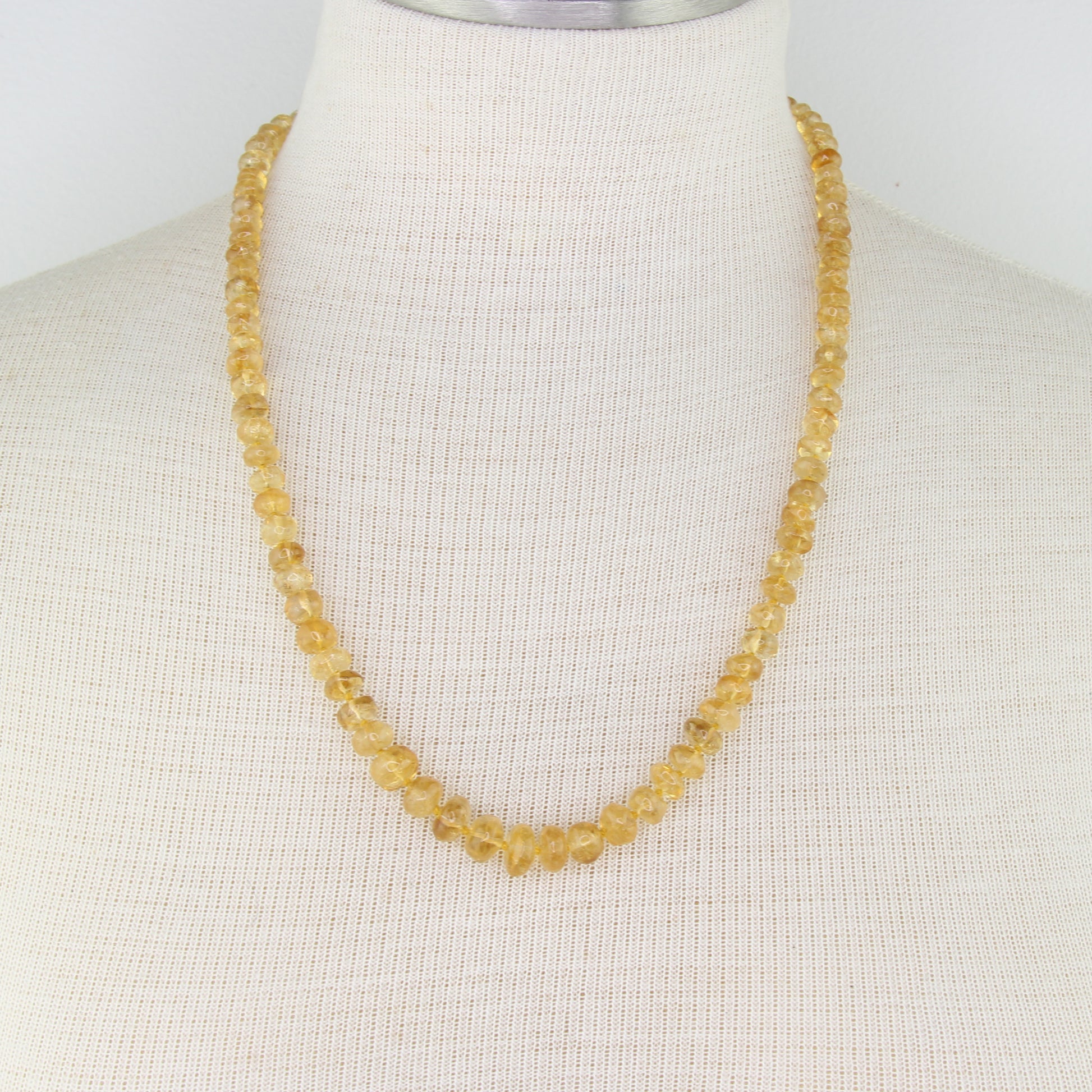 Brighten your collection with the Citrine 22" necklace, featuring graduated-size gemstones that create a stunning visual impact. Hand-knotted with silk thread and finished with a gold-filled clasp, this necklace elegantly showcases the vibrant hues of citrine, thought to promote prosperity, creativity, and self-expression. It's perfect for layering or as a stand-out piece.