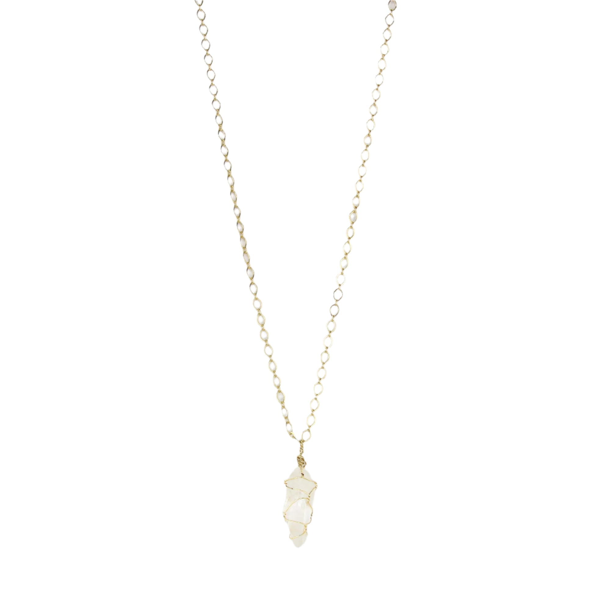 This stunning necklace features a hand-wired Lemurian Quartz pendant on a 22.5" gold-filled chain, with the pendant hanging down 1.5". The chain can easily be shortened to your desired length. Lemurian Quartz is believed to release negative energy, bring harmony, and facilitate inner peace.